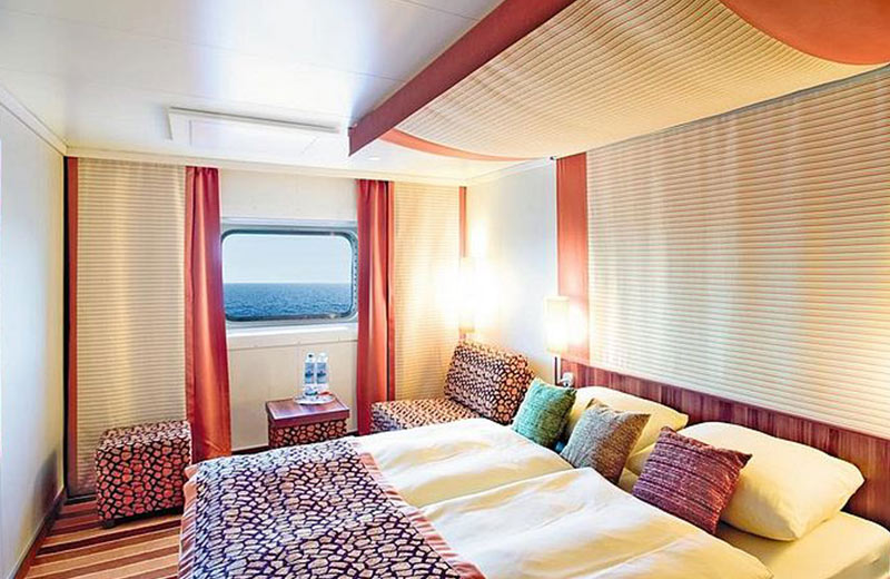 Die Meerblick-Kabinen verfügen über Schlafmöglichkeiten für zwei bis vier Personen. Sie sind ausgestattet mit