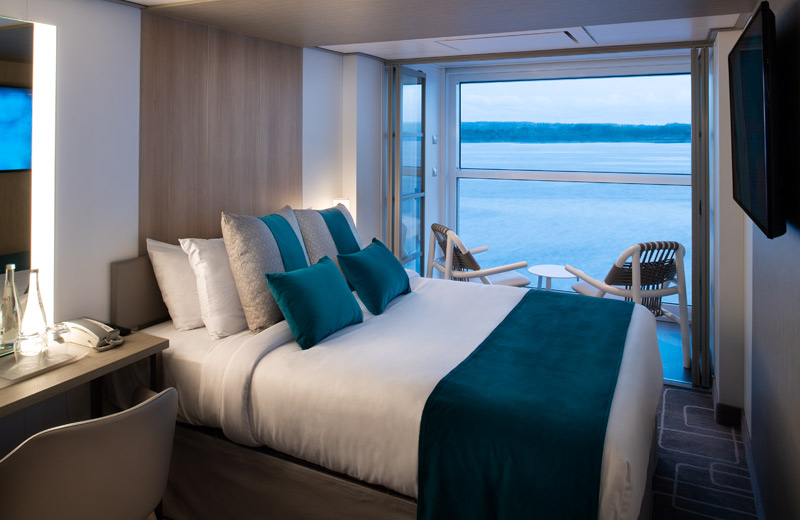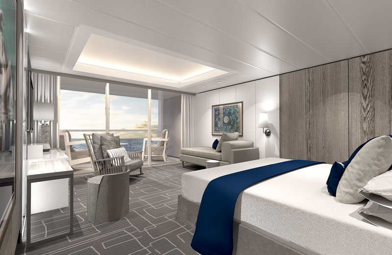 Inkludierte Serviceleistungen sind ein 24-Stunden Kabinenservice, bevorzugtes Einchecken, Willkommens-Champagner, Bademäntel, eine Auswahl an verschiedenen Kissen und Kanapées.