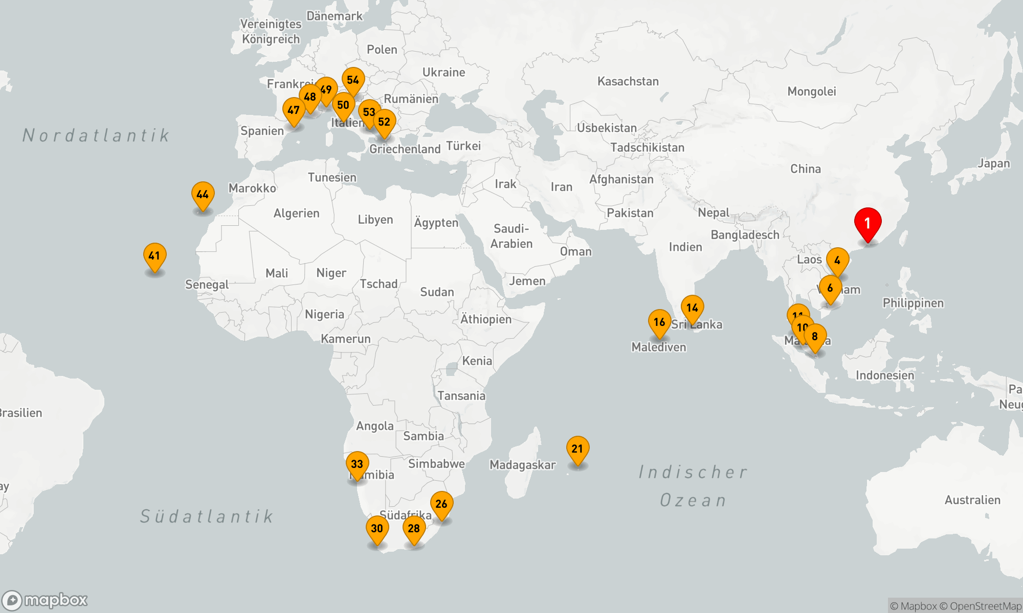 Afrika Asien Indischer Ozean Kanaren und Atlantik Mittelmeer Mittelmeer / östlich Mittelmeer / westlich Weltreise
