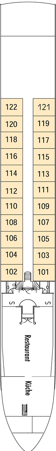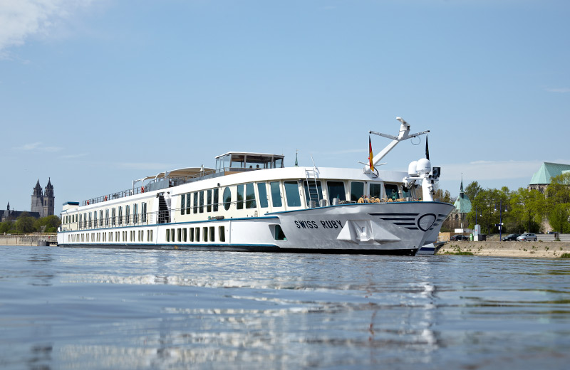 Ausschliesslich elegant eingerichtete Aussenkabinen finden die 88 Gäste auf der MS SWISS RUBY vor. Neben dem stilvollen Interieur zählen Radio, Flat-Screen-TV, Minibar, Safe, Haartrockner, Klimaanlage, Dusche und WC zur gehobenen Ausstattung. Auf dem Smaragddeck können die Betten auf Wunsch auseinandergestellt werden. Kabinen mit französischen Balkonen befinden sich auf dem Rubin Deck.