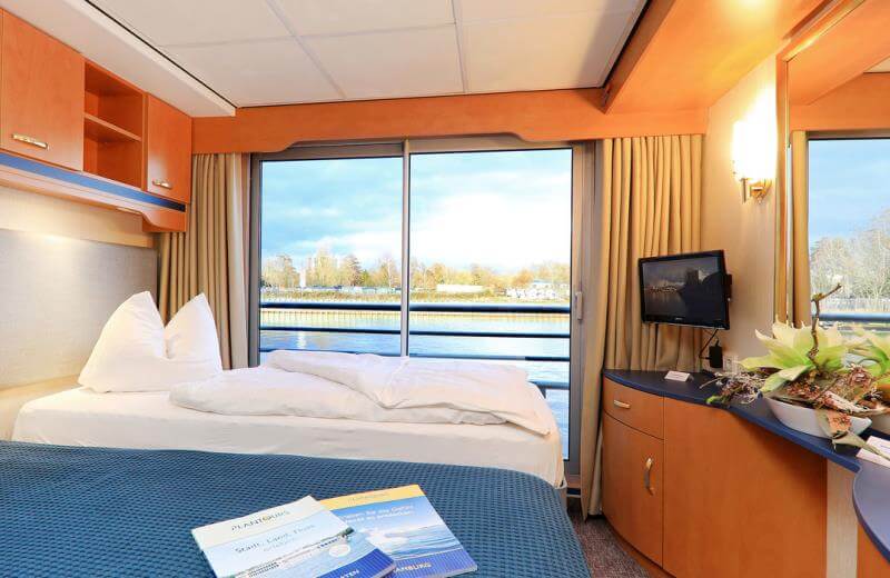 Das stilvolle Restaurant auf dem Eems-Deck verwöhnt Sie mit kulinarischen Köstlichkeiten. Genießen Sie Ihre Mahlzeiten in angenehmer Atmosphäre und lassen Sie sich von unserem aufmerksamen Service verwöhnen. Die komfortablen Außenkabinen bieten Ihnen eine erholsame Rückzugsmöglichkeit während Ihrer Kreuzfahrt. Auf dem Elbe-Deck wurden französische Balkone eingebaut, um Ihnen einen atemberaubenden Ausblick auf die vorbeiziehende Landschaft zu ermöglichen. Im Winter 2018/2019 wurden alle Kabinen modernisiert und mit Hotelbetten ausgestattet, um Ihnen höchsten Komfort zu bieten.