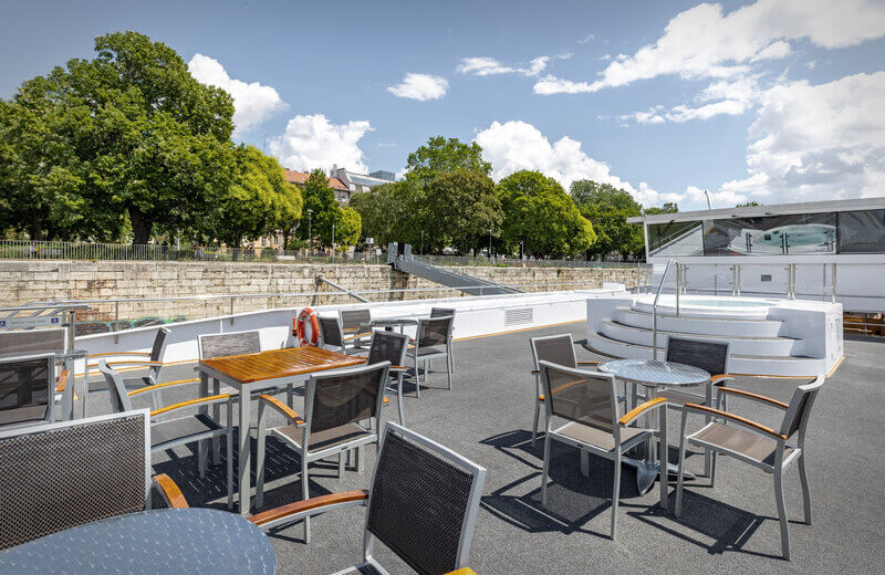 Obwohl die A-ROSA ALEA zu den kleineren Schiffen gehört, müssen Sie auf keinerlei Annehmlichkeiten verzichten. Das Sonnendeck bietet alles für die perfekte Auszeit: