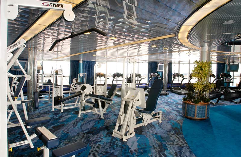 Sportlich begeisterte Kreuzfahrtgäste finden im Fitnesscenter der Oosterdam zahlreiche moderne Trainingsgeräte und Kursangebote vor. Volleyballfeld, Basketballplatz und Joggingpfad ergänzen das Sportangebot auf den Freidecks.
