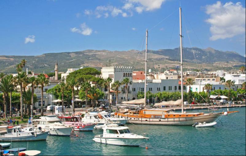Kos ist eine zu den Dodekanes gehörende griechische Insel an der Küste von Karien. Die 40 Kilometer lange und 8 Kilometer breite Insel hat eine Gesamtfläche von etwa 290 km² und ist nur 4 Kilometer von der Küste von Bodrum/Türkei entfernt. Kos hat fruchtbare Ebenen und karge Anhöhen, die Südhälfte ist durch mittelhohe Gebirge geprägt. Geologisch besteht die Insel aus Schiefer und Kreidekalk, mit mehreren meterdicken Lagen quartärem vulkanischen Tuffs obenauf. Die Angaben zur Einwohnerzahl schwanken zwischen 20.000 und 30.000. Der Haupthafen ist Mandraki, und Hauptstadt der Insel ist der gleichnamige Ort Kos, der das touristische und kulturelle Zentrum der Insel bildet. Am Hafeneingang steht die im Jahr 1315 durch die Johanniter erbaute Festung Neratza. Der antike Arzt Hippokrates soll auf Kos geboren worden sein; im Stadtzentrum steht die Platane des Hippokrates, ein Traumtempel, wo der Arzt der Überlieferung nach gelehrt haben soll. Die Äste des alten Baums werden heute durch ein Gerüst gestützt. Seit einigen Jahren hat Kos eine der wenigen Marinas in Griechenland. Die Kos-Marina ist Anlaufpunkt für private Segler und Motoryachten, aber auch Stützpunkt der großen Yachtcharterfirmen.