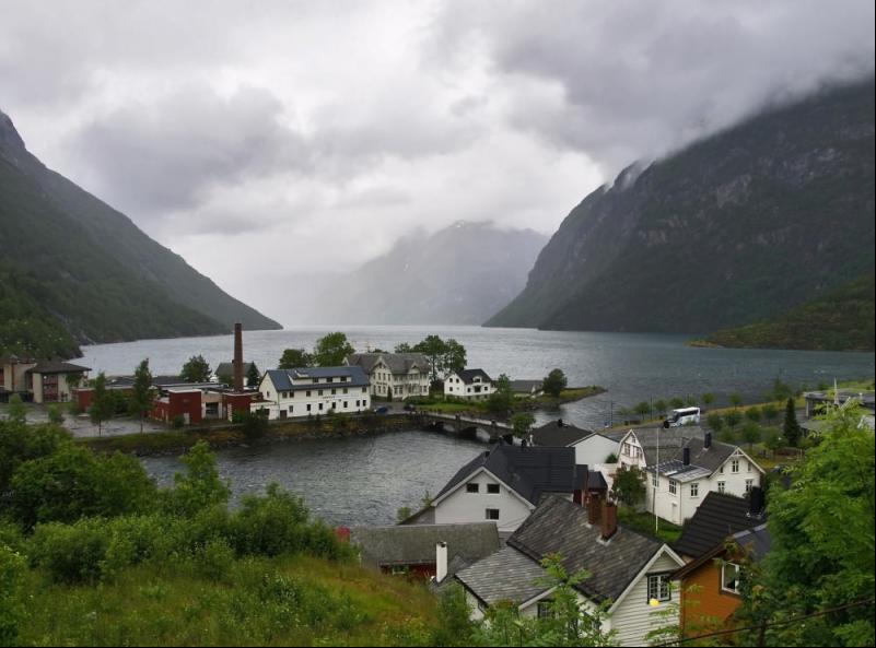 Hellesylt liegt in Norwegen, wunderschön am Anfang des Geirangerfjordes. Von Hellesylt fährt mehrere Male am Tag eine Autofähre durch den Fjord nach Geiranger. Der Geirangerfjord ist umgeben von extrem steil abfallenden Felshängen.