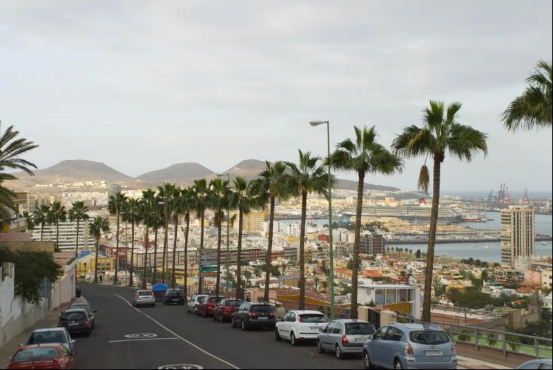Die Stadt Las Palmas de Gran Canaria ist mit knapp 400.000 Einwohnern die größte Stadt der Kanarischen Inseln. Maßgeblich geprägt wird sie durch ihren Hafen, der der zweitgrößte am Atlantik ist. Zu den Nachbargemeinden zählen Santa Brígida im Süden und Arucas im Westen.Berühmte Bauwerke in der Altstadt von Las Palmas sind die fünfschiffige Kathedrale Santa Ana aus dem Jahre 1497, die Sitz des Bischofs der Kanarischen Inseln ist, und die Casa de Colón, ein prachtvoller Kolonialbau, in dem das Kolumbus-Museum untergebracht ist.Im Süden der Stadt befindet sich in einem kleinen Park umgeben von Rosenbeeten die Festungsanlage "Castillo de la Luz" aus dem 16.Las Palmas - der Hafen, die Stadt