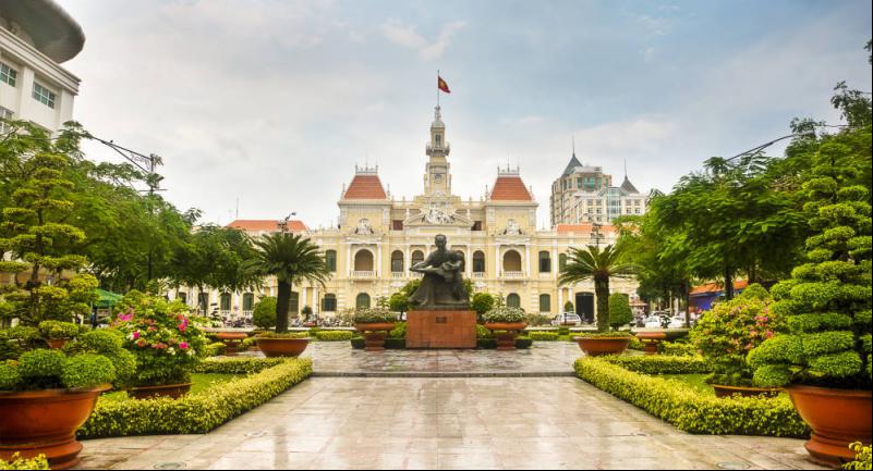 Ho-Chi-Minh-Stadt ist die größte Stadt Vietnams mit ca. 5.140.412 Menschen. Die Stadt liegt etwas nördlich des Mekong-Deltas auf dem Westufer des Saigon-Flusses. Unter ihrem alten Namen Sàigòn war sie bis zum April 1975 Hauptstadt der Republik Vietnam. Sie ist Industriestadt, Verkehrsknoten und Kulturzentrum mit Universitäten, Theater, Kinos, Museen und Baudenkmälern.Die zwischen 1877 und 1883 aus Backstein errichtete neoromanische Kathedrale Notre-Dame ist eines der bedeutendsten Kolonialgebäude der Stadt und das Zentrum der katholischen Kirche in Südvietnam.Die Jade-Pagode ist die bunteste Pagode der Stadt. Sie wurde 1909 von der kantonesischen Gemeinde der Stadt errichtet und verehrt mehrere taoistische und buddhistische Gottheiten.