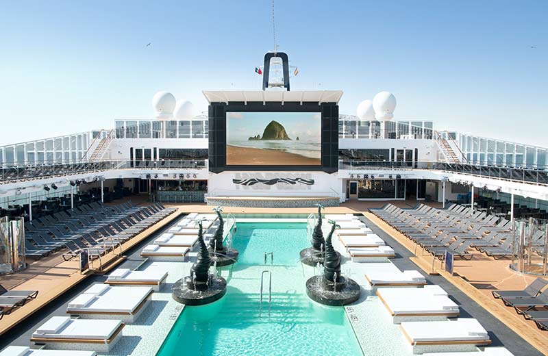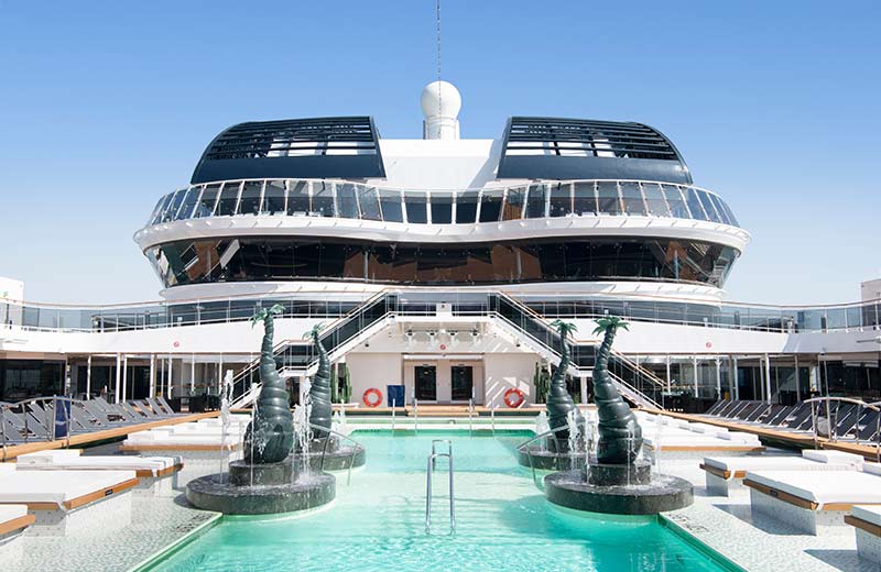 Mit durchschnittlich ca. 10 m² Platz für jeden Gast gehört der Poolbereich auf der MSC Bellissima zu einem der größten auf See. Ein riesiger Bildschirm und atmosphärisches Design machen den Pool auch nach Einbruch der Dunkelheit zu einem beliebten Aufenthaltsbereich an Bord.