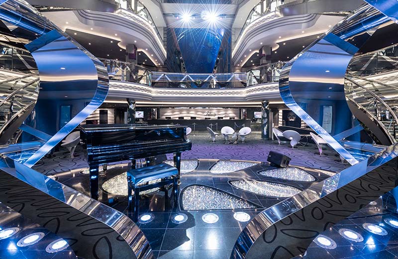 Zweimal pro Nacht und an sechs Abenden pro Woche geben die unvergleichlichen Artisten von Cirque du Soleil, jeweils zwei einzigartige Vorstellungen. Gleichzeitig können die Gäste ein hervorragendes kulinarisches Erlebnis an diesem glamourösen Ort genießen. Das Schiff ist für die Shows mit einem eigens dafür gebauten Hightech-Theater ? der Carousel Lounge ? ausgestattet, welche in Zusammenarbeit mit dem Cirque du Soleil entwickelt wurde.