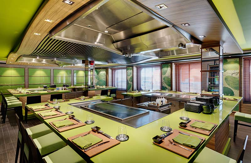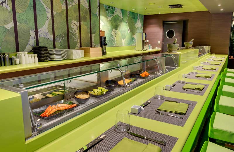 Etwas Besonderes für jeden Geschmack finden Sie in 12 verschiedenen Dinner-Locations. Sie erwarten neue Spezialitäten-Restaurants, die HOLA! Tapas Bar by Ramón Freixa, die Jean-Philippe Maury Chocolaterie und Chocolate Bar sowie ein neues französisches Spezialitäten-Restaurant, l?Atelier Bistrot und das amerikanischen Steakhouse Butcher's Cut.