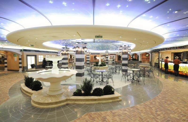 Wenn das Wetter mal nicht Ihren Wünschen entsprechen sollte oder Ihnen der Seetag zu lang wird, können Sie nach Herzenslust auf mehr als zwei Decks durch die Shoppingmeile schlendern.