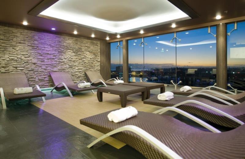 "Aurea Spa Wellness Center" mit folgenden Annehmlichkeiten: Sauna, Dampfbad, Thalassotherapie, Aromatherapie, Chromotherapie, Aerobic, Fitness Center, Yoga-Kursen, Schönheitssalon mit Friseur, Solarium, Relax Area, Spa Bäder sowie einer Spa Bar