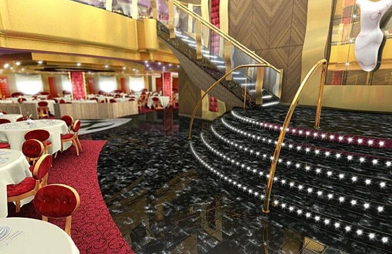 Der große Theatersaal mit einer Kapazität von maximal 1.650 Personen bietet abwechslungsreiche Shows und Aufführungen. In der Lounge mit Tanzfläche und einer Anzahl von 275 Sitzplätzen, können Sie danach den Abend ruhig ausklingen lassen. Außerdem gibt es noch das Casino, eine Diskothek mit VIP Bereich, Videospiele, 4D Kino, einen Formel 1 Simulator sowie eine Bibliothek, ein Internetcafé, eine Cigar Lounge und ein Spielzimmer.