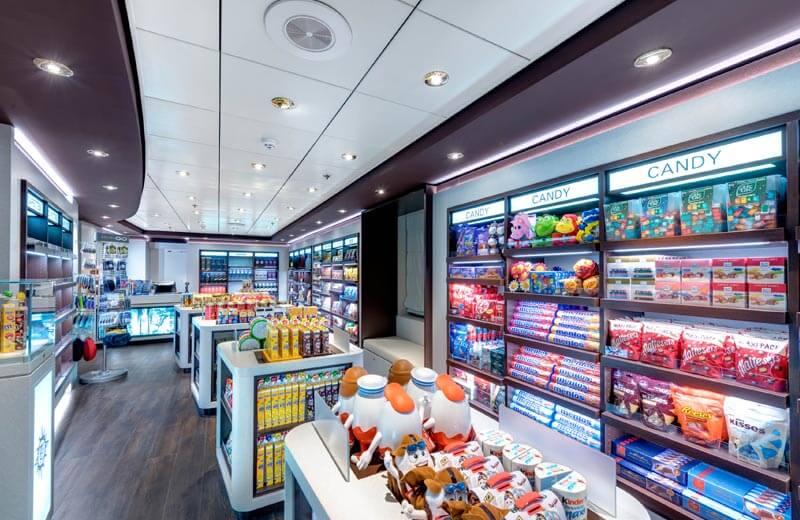 Die Einkaufsmeile auf dem Promenadendeck bietet viele kleine Boutiquen, einen Duty Free Shop sowie einen Fotoservice mit vielen Fotoartikel und einen Friseur mit Kosmetikstudio.