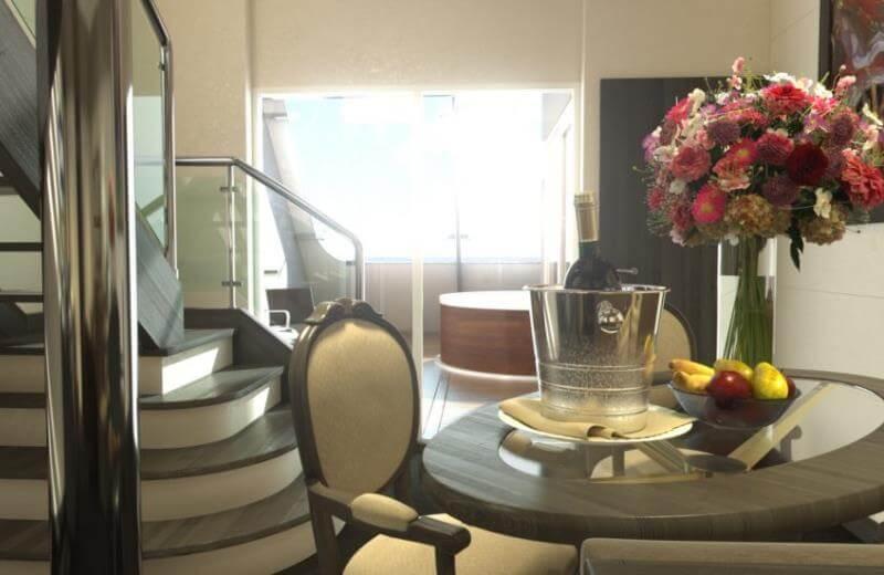 Die Suiten gehören zum Yacht Club und bieten besonderen Komfort und Service. Als MSC Yacht Club Gast genießen Sie exklusive Leistungen und Privilegien. U.a. steht Ihnen 24 Stunden ein Butler zur Verfügung und Sie genießen das exklusive SPA-Angebot. Über einen privaten Aufzug ist das MSC Aurea SPA erreichbar und bietet VIP Räume für entspannende Ruhe.