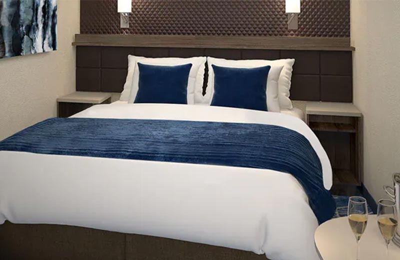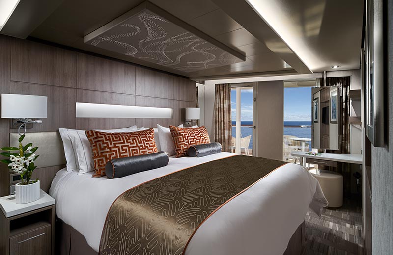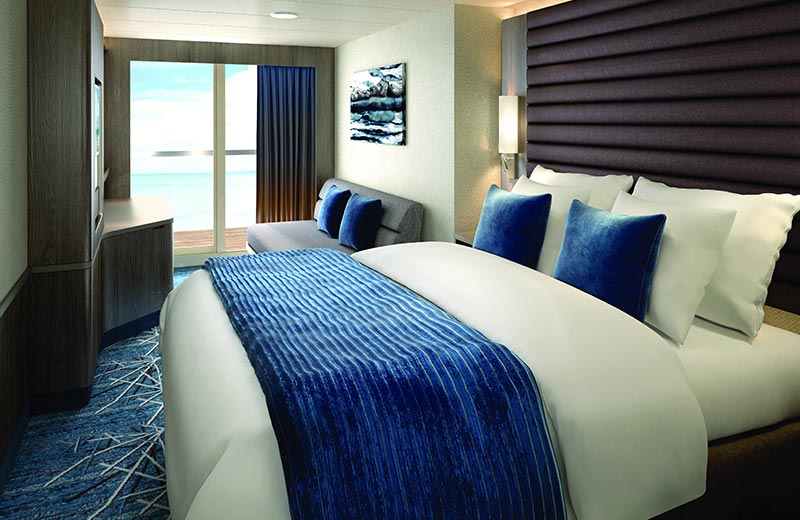 Die Balkonkabinen sind mit einem Queensize-Bett sowie ggf. weiteren Schlafmöglichkeiten (Pullman-Betten oder Schlafsofa), Bad mit Dusche und WC, Flachbild-TV, Schreibtisch mit Stuhl, Föhn, Klimaanlage, Safe und Telefon ausgestattet.