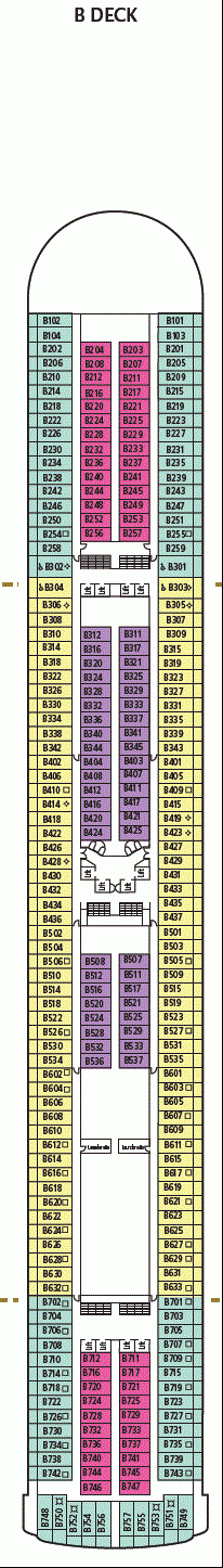 Diese Innenkabinen verfügen über zwei Einzelbetten sowie zusätzlich zwei Oberbetten. Die Einzelbetten können aus Sicherheitsgründen nur dann zusammengestellt werden, wenn die oberen Betten nicht benutzt werden. Ferner sind die Kabinen ausgestattet mit einem Stuhl und einem Tisch, einem Kleiderschrank und einem großen Spiegel. Die Kabine hat zudem TV, Radio, Telefon, Kühlschrank, Kaffe-/Teemaschine, Safe, Fön und Klimaanlage. Das Badezimmer ist mit Dusche und WC eingerichtet.