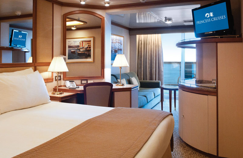 Balkon. Die Kabine ist mit einem Doppelbett ausgestattet, welche aus zwei