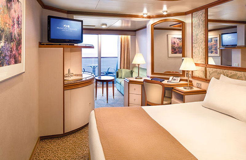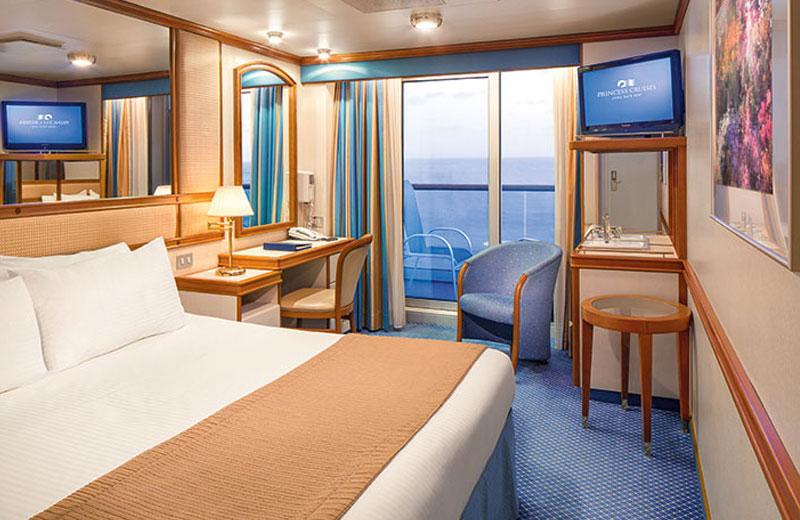 Balkon. Die Kabine ist mit einem Doppelbett ausgestattet, welche aus zwei