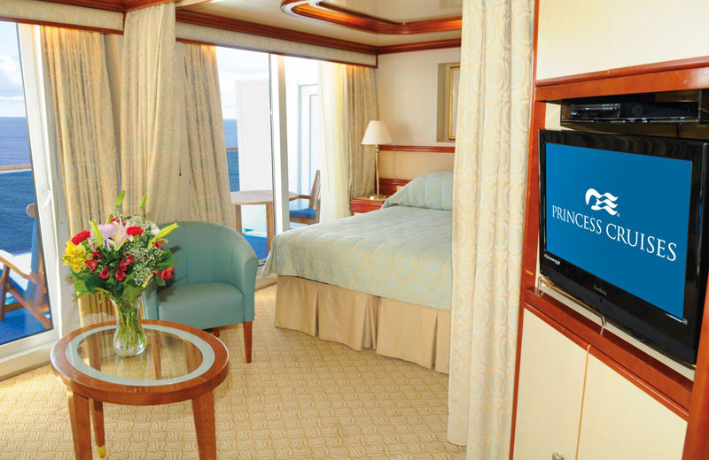 können. Daneben besitzt die Kabine einen Fernseher, Kühlschrank,
