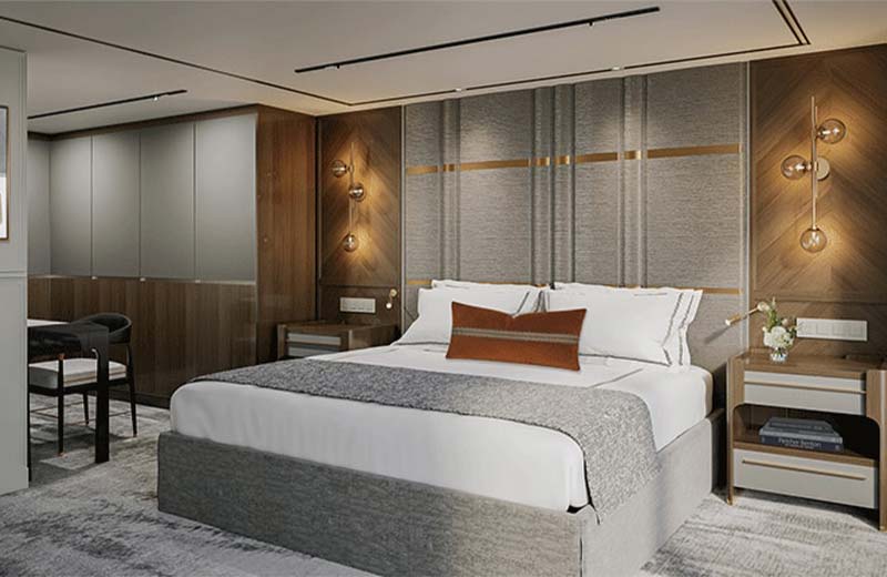 **Zwei Schlafzimmer:** Zwei elegant gestaltete Schlafzimmer mit hochwertiger Bettwäsche und personalisiertem Kissen-Menü