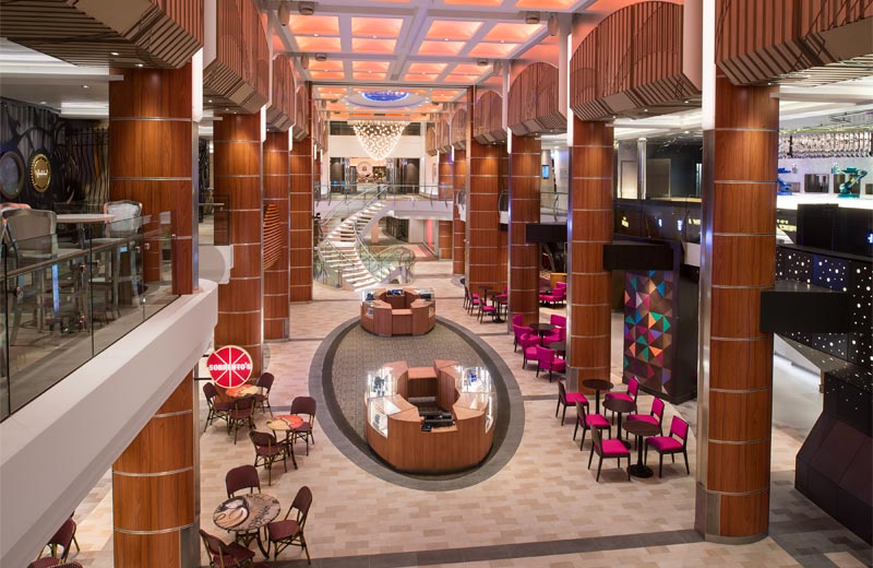 Das große Promenadendeck der Quantum of the Seas bietet Ihnen zahlreiche Boutiquen und Shops. Ob Urlaubs- und Reisebedarf oder Schmuck, Blumen und Mode-Trends - hier finden sie alles. Natürlich ist Duty-Free-Shop ebenfalls vorhanden.