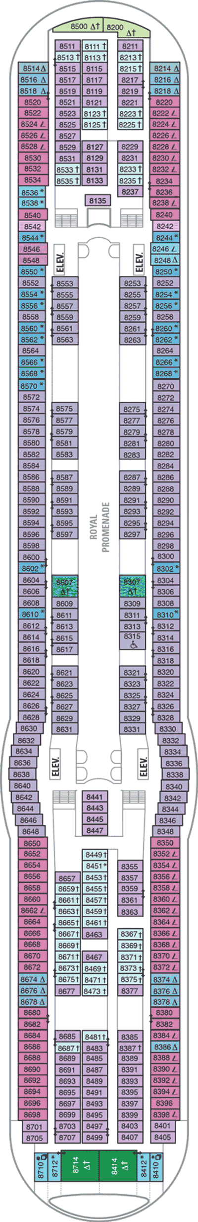Überzeugen kann die Independence of the Seas auch mit einer großen Auswahl an unterschiedlichen Kabinenkategorien. Von der Innenkabine über verschiedene Außenkabinen mit und ohne eigenen Balkon, speziellen geräumigenFamilienkabinen bishin zu exklusiven Suiten finden Sie garantiert die passende Unterkünft an Bord. Dabei sind alle Kabinen modern, freundlich und komfortabel eingerichtet, damit Sie ihre Kreuzfahrt auf der Independence of the Seas richtig genießen können.KabinenDeckplan