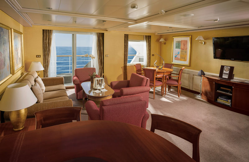 Die sehr geräumigen Royal 2 Suiten bestehen aus einer Royal 1 und einer Veranda Suite. Sie besitzen genau die gleiche Ausstattung wie die beiden Suiten (siehe Kabinenbeschreibung Royal 1 und Veranda Suite) und sind durch eine Tür mit einander verbunden. Somit kommen Sie in den Genuss von bis zu 126 Quadratmetern puren Luxus und erleben während Ihres Aufenthaltes an Bord der Silver Shadow ein unvergessliches Urlaubserlebnis.