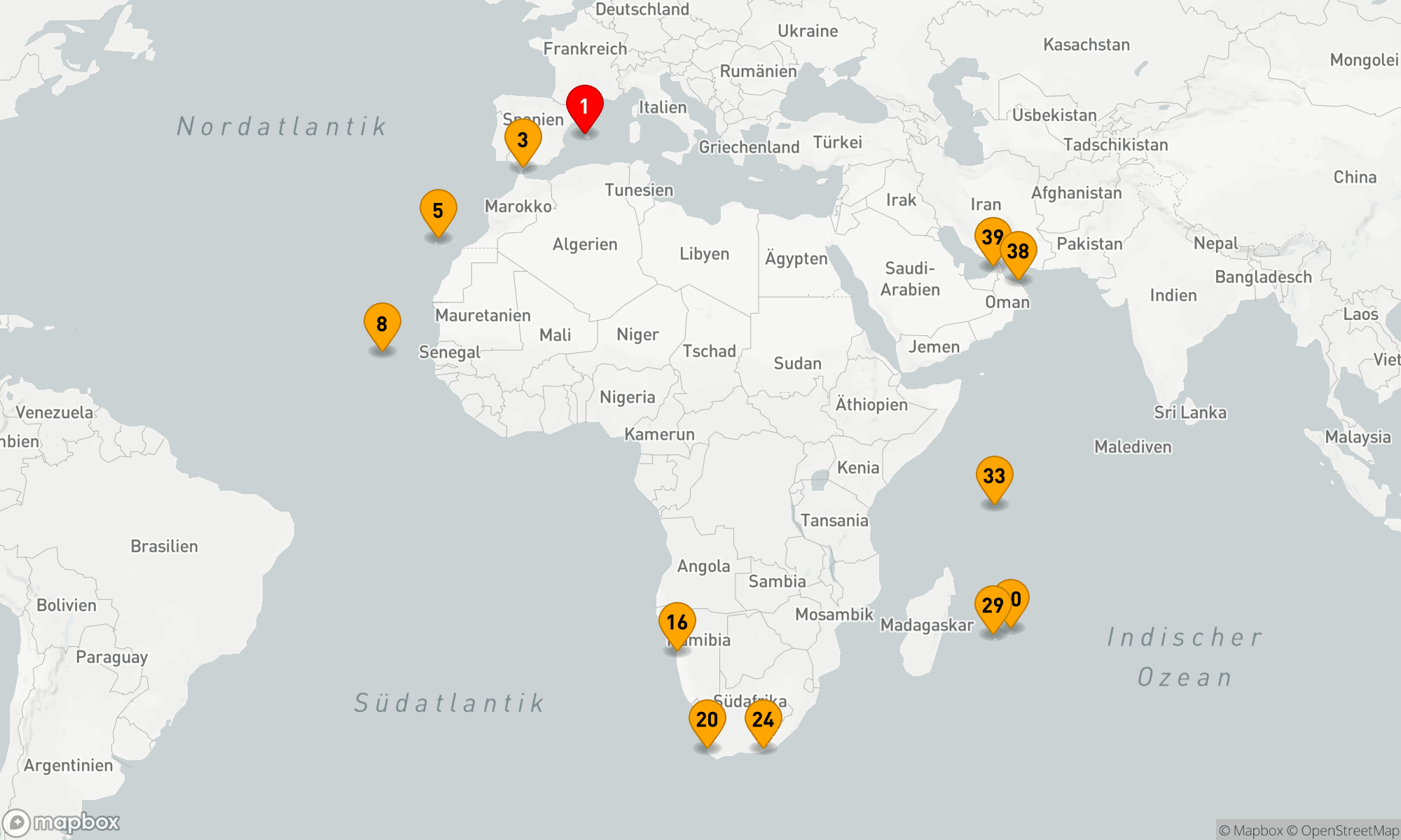 Mein Schiff 4 bereist folgende Länder: Frankreich Gibraltar Griechenland Italien Kapverden Katar Kroatien Malta Marokko Mauritius Namibia Oman Serbien & Montenegro Seychellen Slowenien Spanien Südafrika V. Arabische Emirate